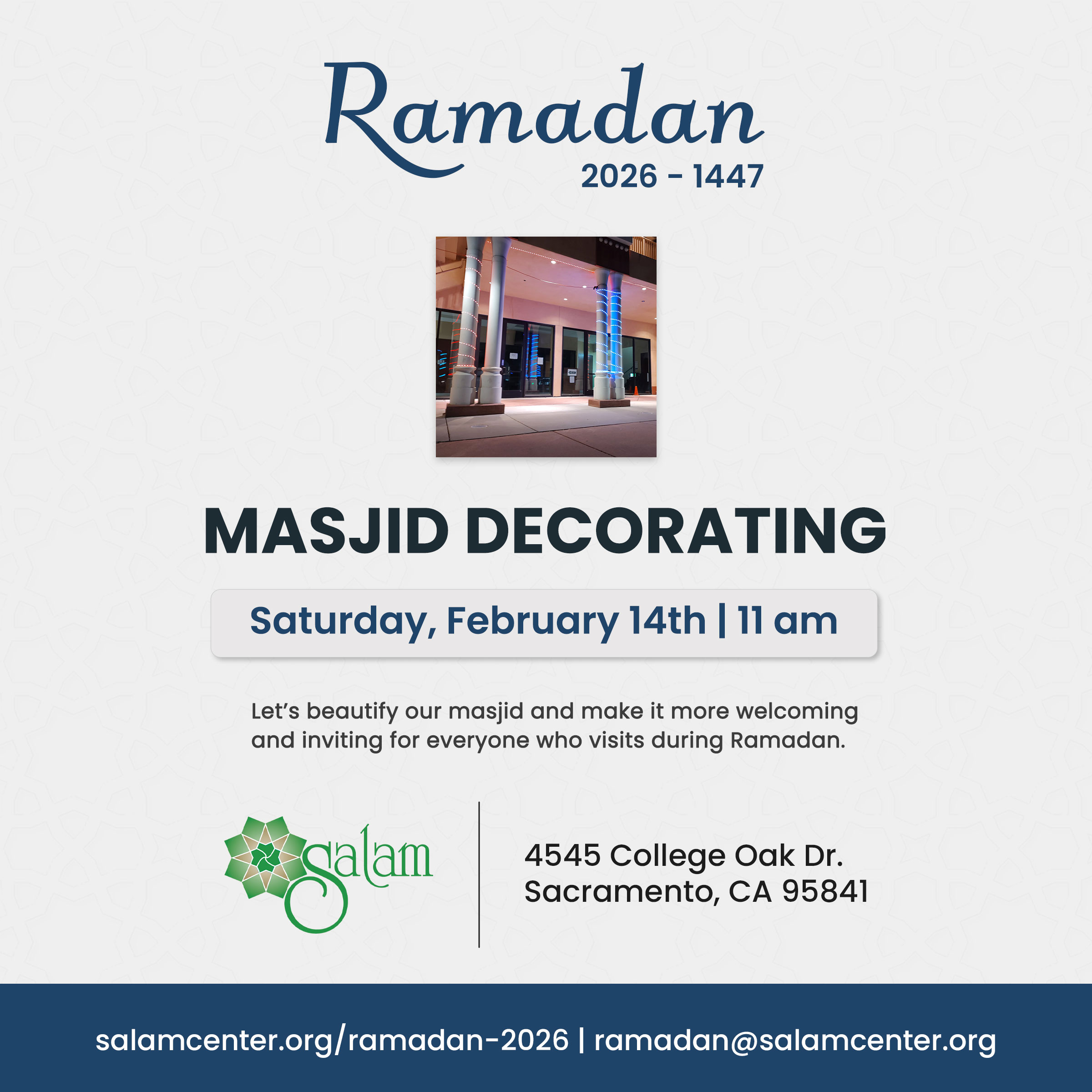Masjid Decorating | Saturday, February 14th | 11 am