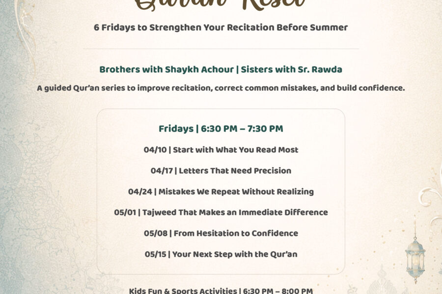 Quran Reset | Friday Family Night Quran Reset | Friday Family Night Friday Night Program Starting Friday, April 10 Starting April 10, join us for Qur’an Reset…arwahouryApril 3, 2026